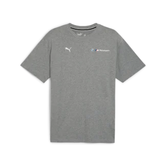 The BMW MMS ESS+ Logo T-Shirt impresses with its casual cut, subtle logo details from BMW M Motorsport and PUMA on the front, and a vertical BMW Motorsport logo print on the back for a sporty-modern look.